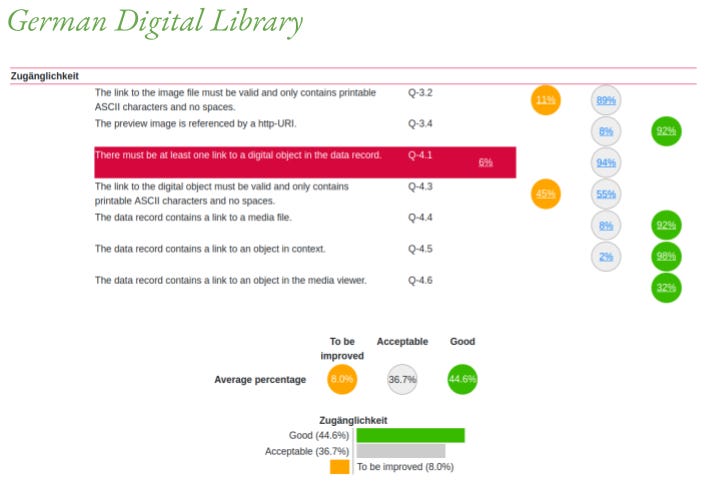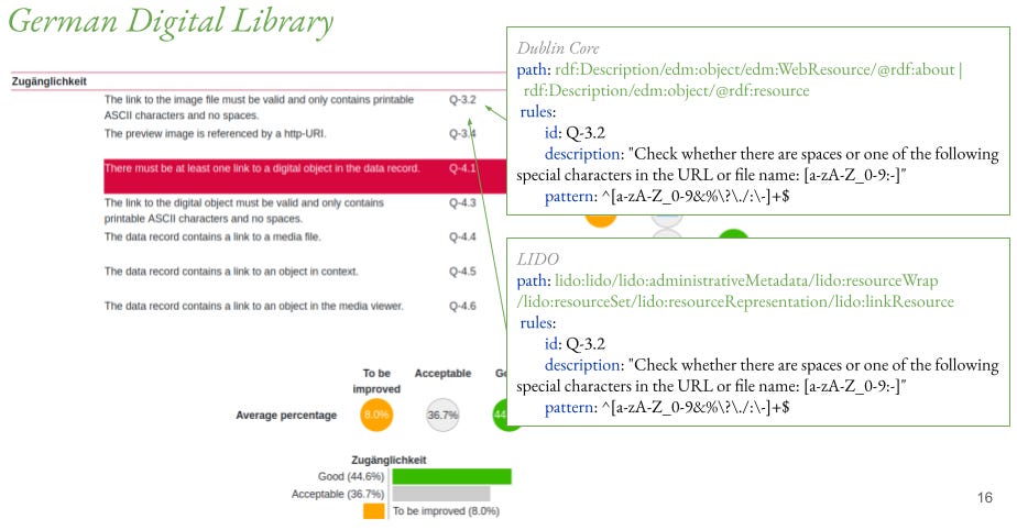 Deutsche Digitale Bibliothek assessment (code): https://github.com/pkiraly/metadata-qa-ddb
