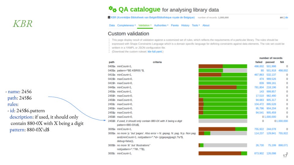 QA catalogue: https://qa-data.kbr.be, https://github.com/pkiraly/qa-catalogue