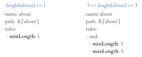 It is possible to combine these rules with logical operators. For example there should be one and only one identifier, and it should contain at least one character.
