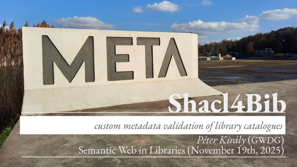I should mention an alternative approach called ShEx or Shape Expressions. For those who are interested in application of ShEx on semantic library data I highly recommend the collected works of Gustavo Candela. Today however I will not talk about the direct application of these approaches.